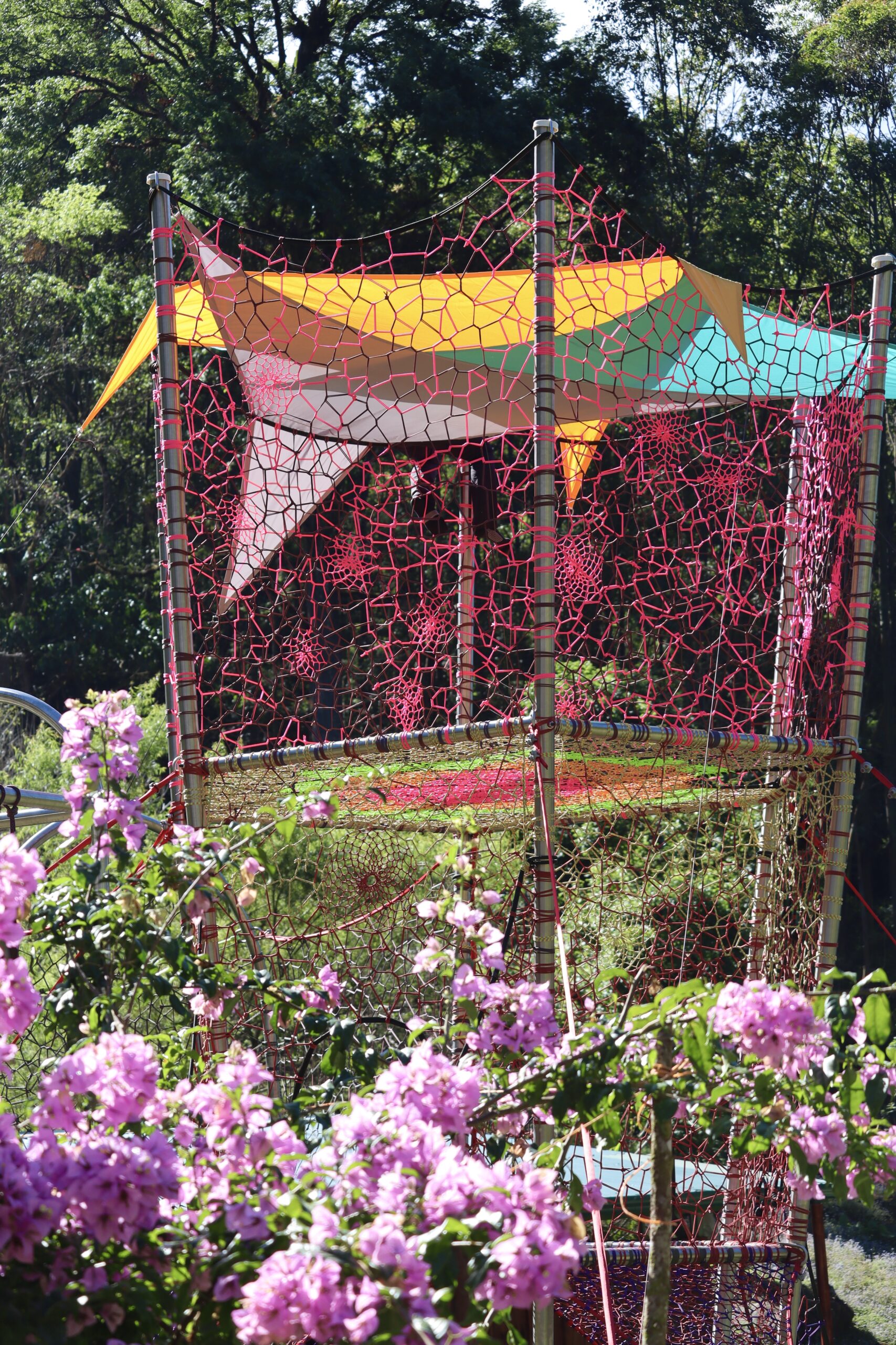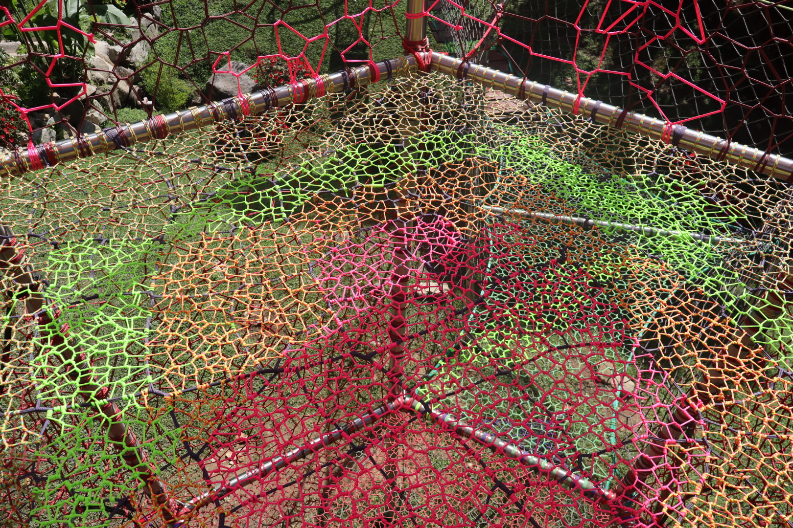 This playful and interactive installation invites both children and adults to engage their bodies, minds, and senses in a colorful journey. It combines handcrafted nets and metal elements to create a safe and inviting environment, where exploration happens at every step.