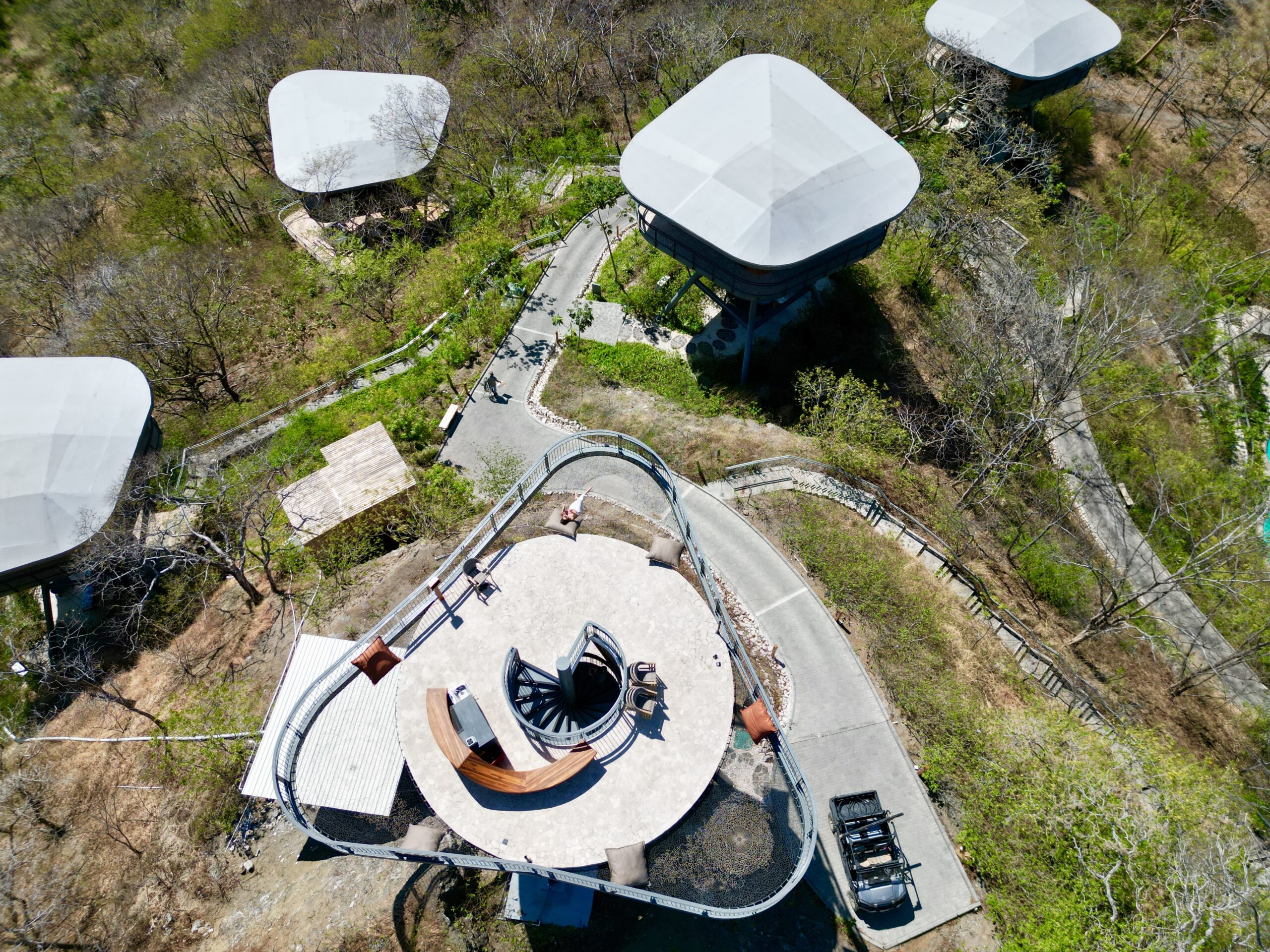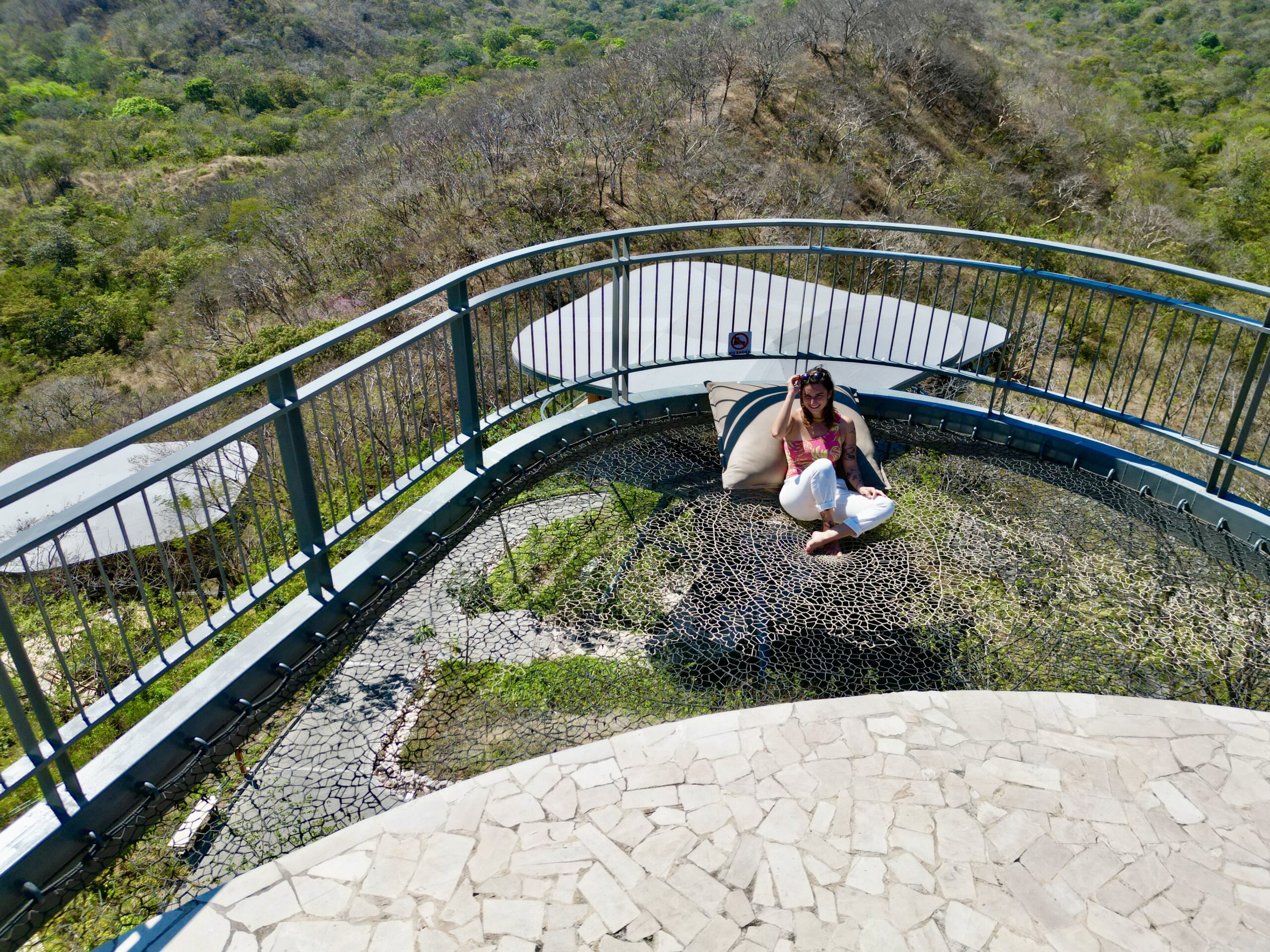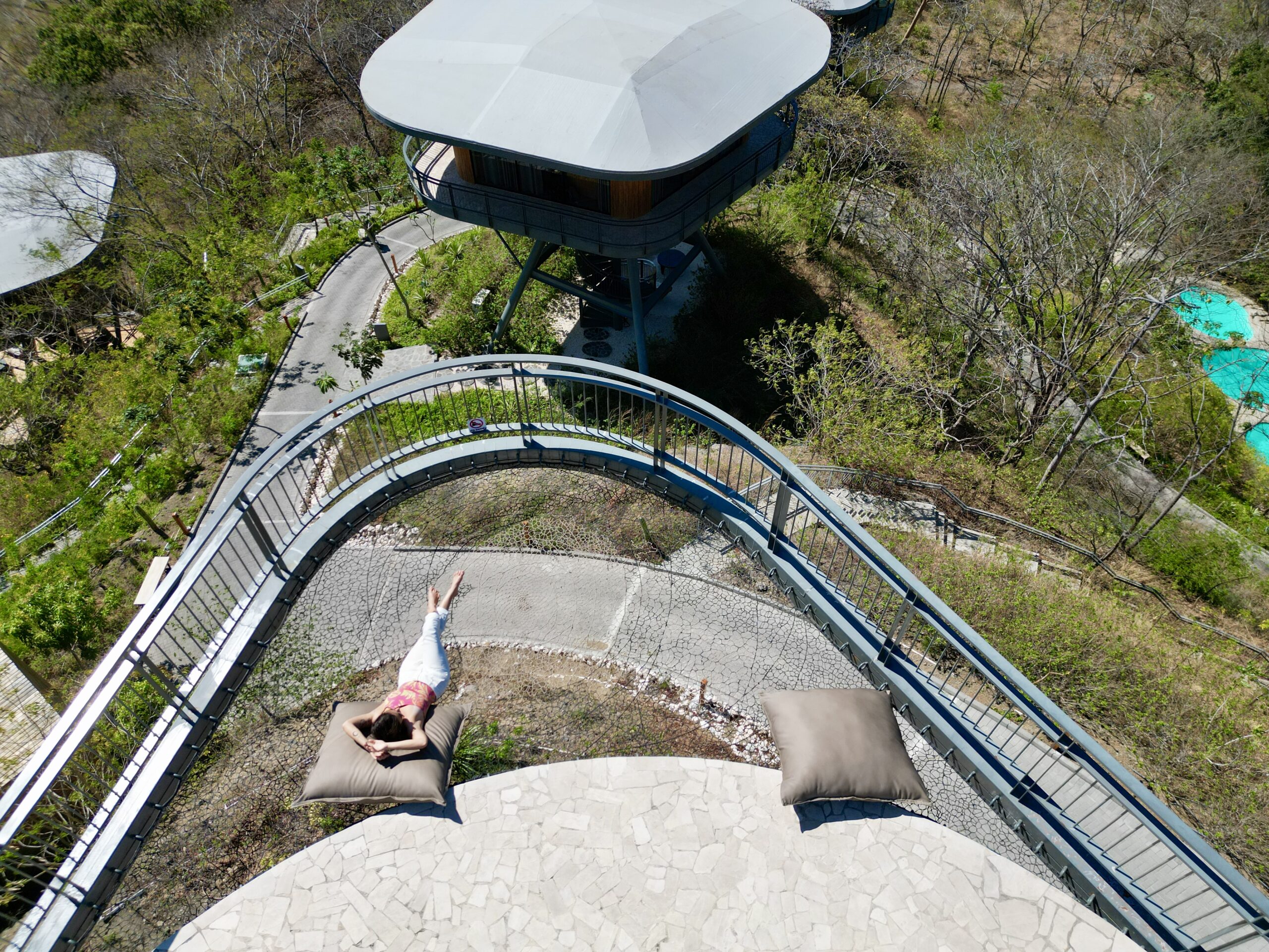 An exhilarating viewpoint suspended 25 meters above the ground, featuring three interconnected nets woven with a sunset design. Guests at Suitree Hotel can experience the sensation of floating while taking in awe-inspiring views of the mountains and valleys of northern Costa Rica.