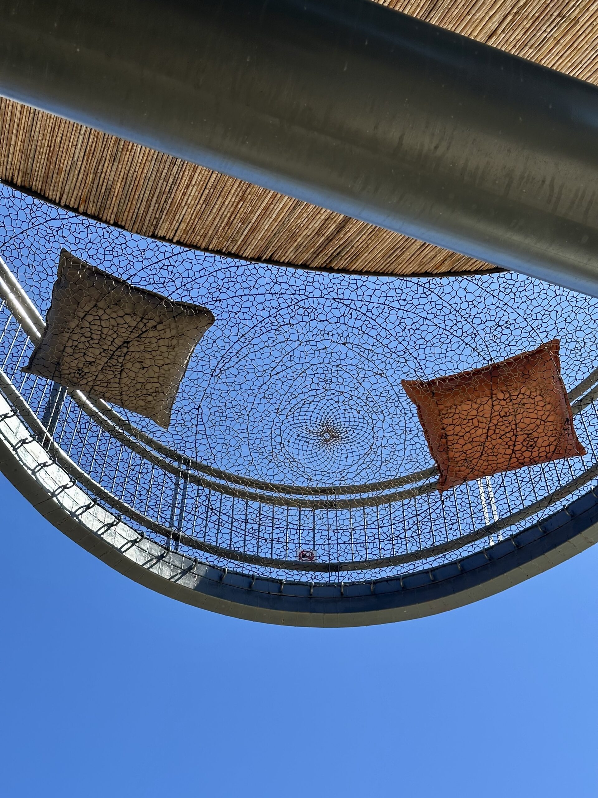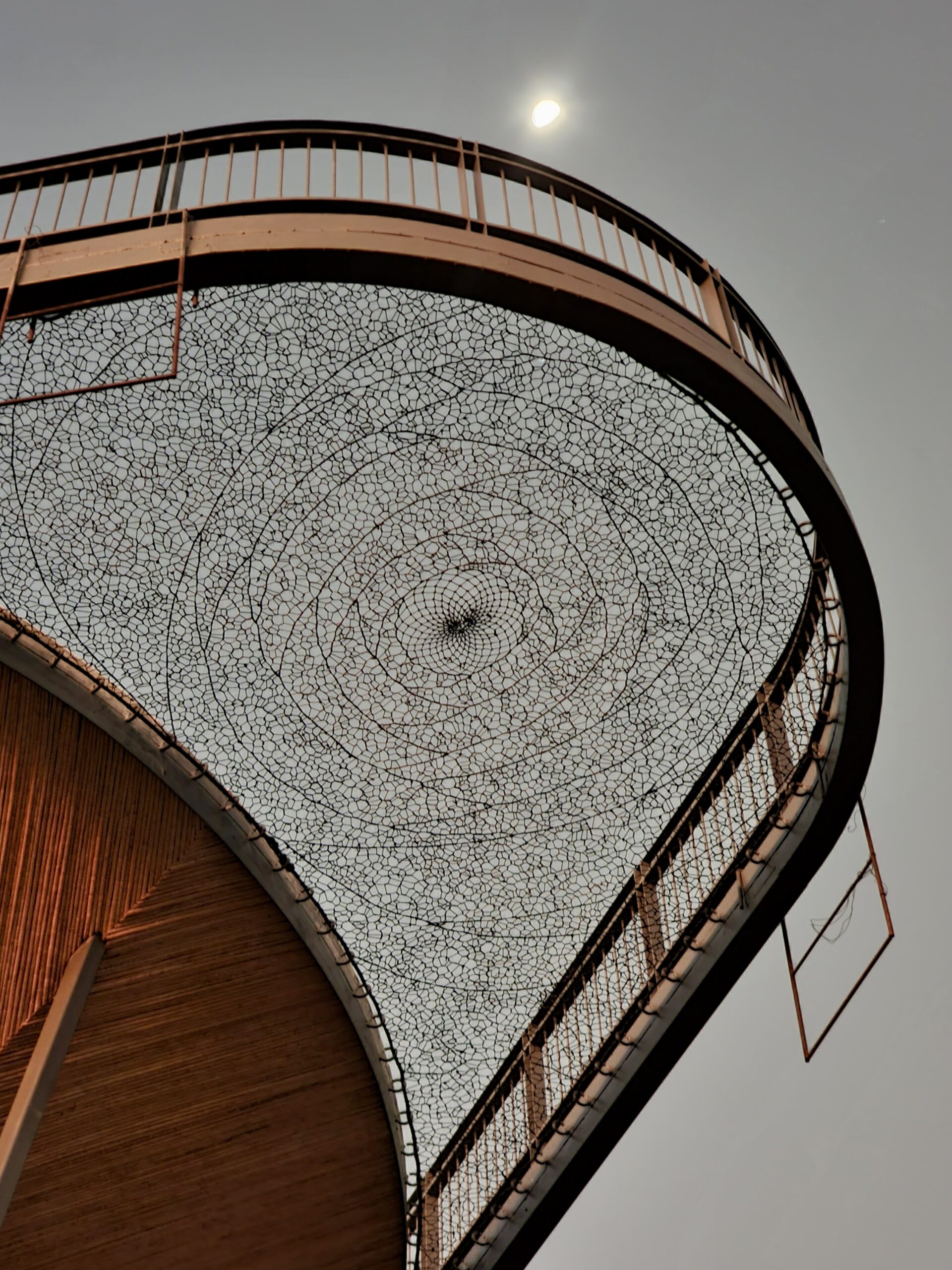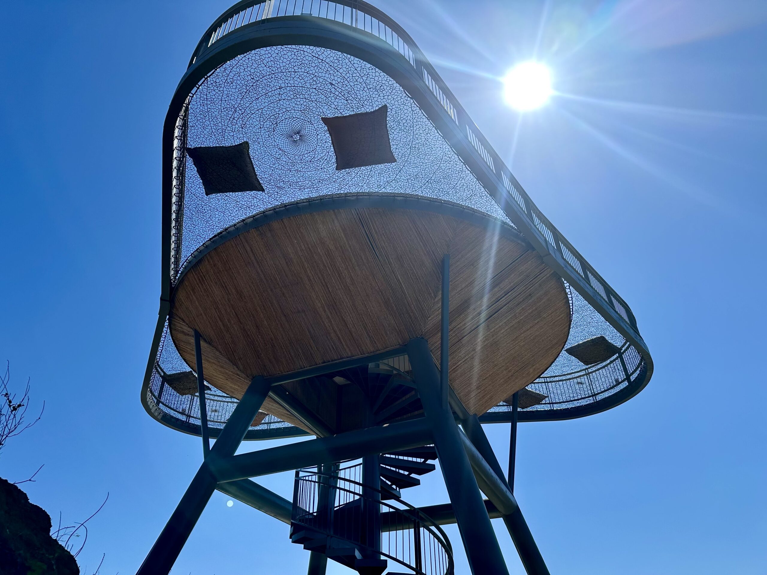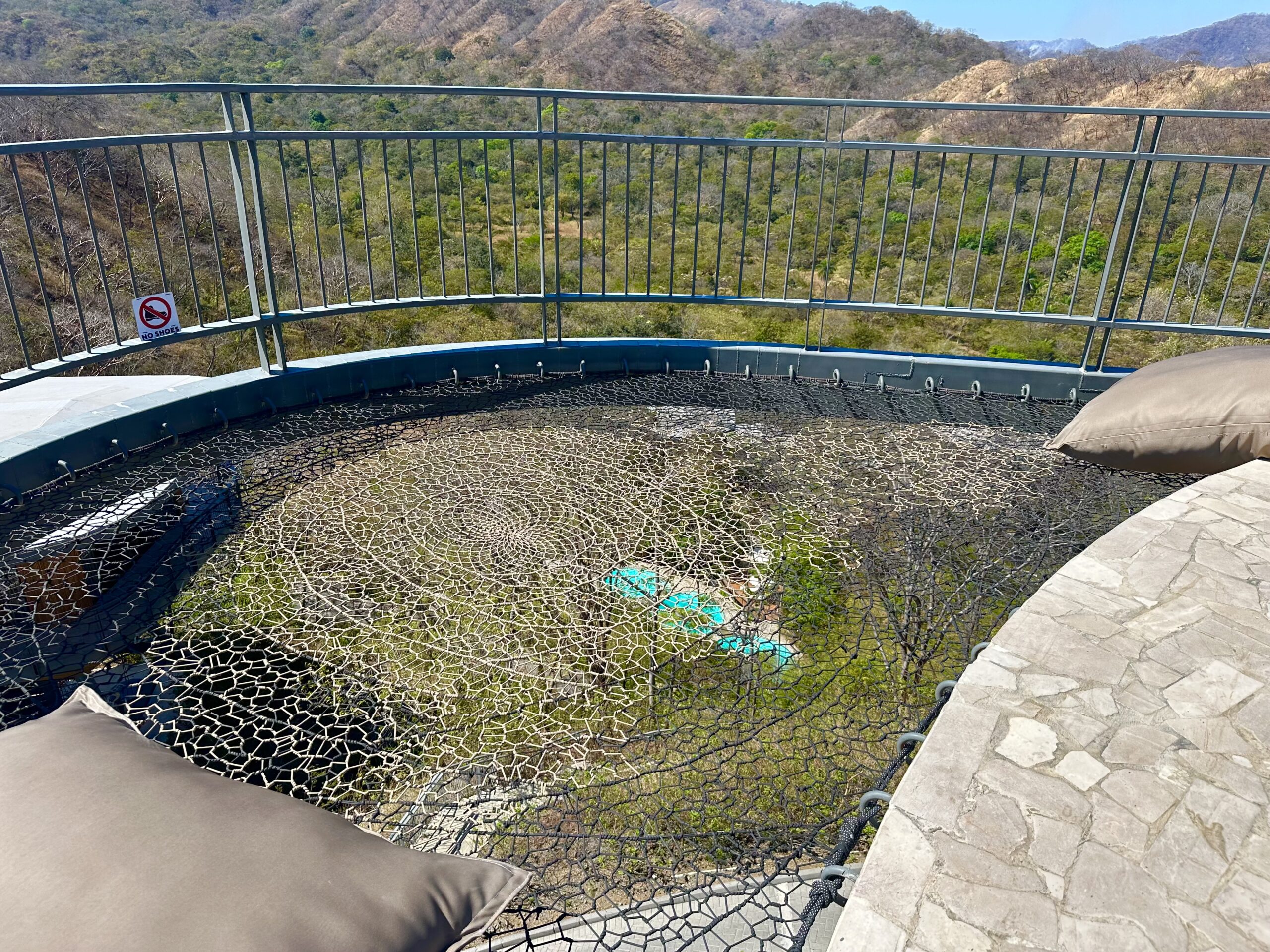 An exhilarating viewpoint suspended 25 meters above the ground, featuring three interconnected nets woven with a sunset design. Guests at Suitree Hotel can experience the sensation of floating while taking in awe-inspiring views of the mountains and valleys of northern Costa Rica.