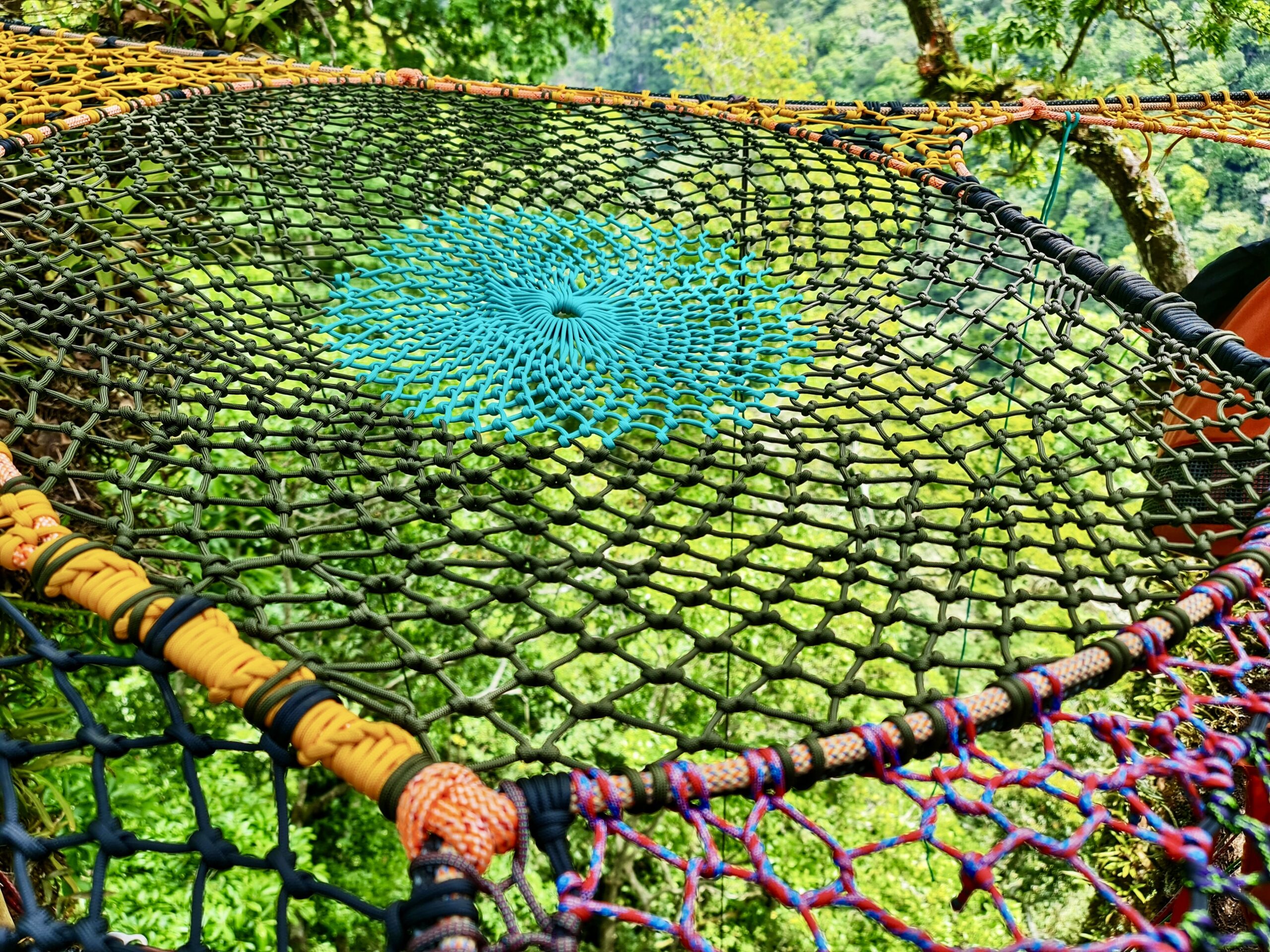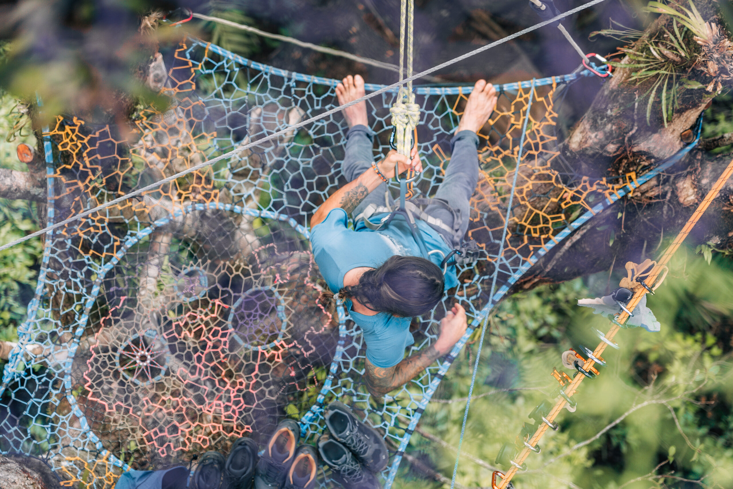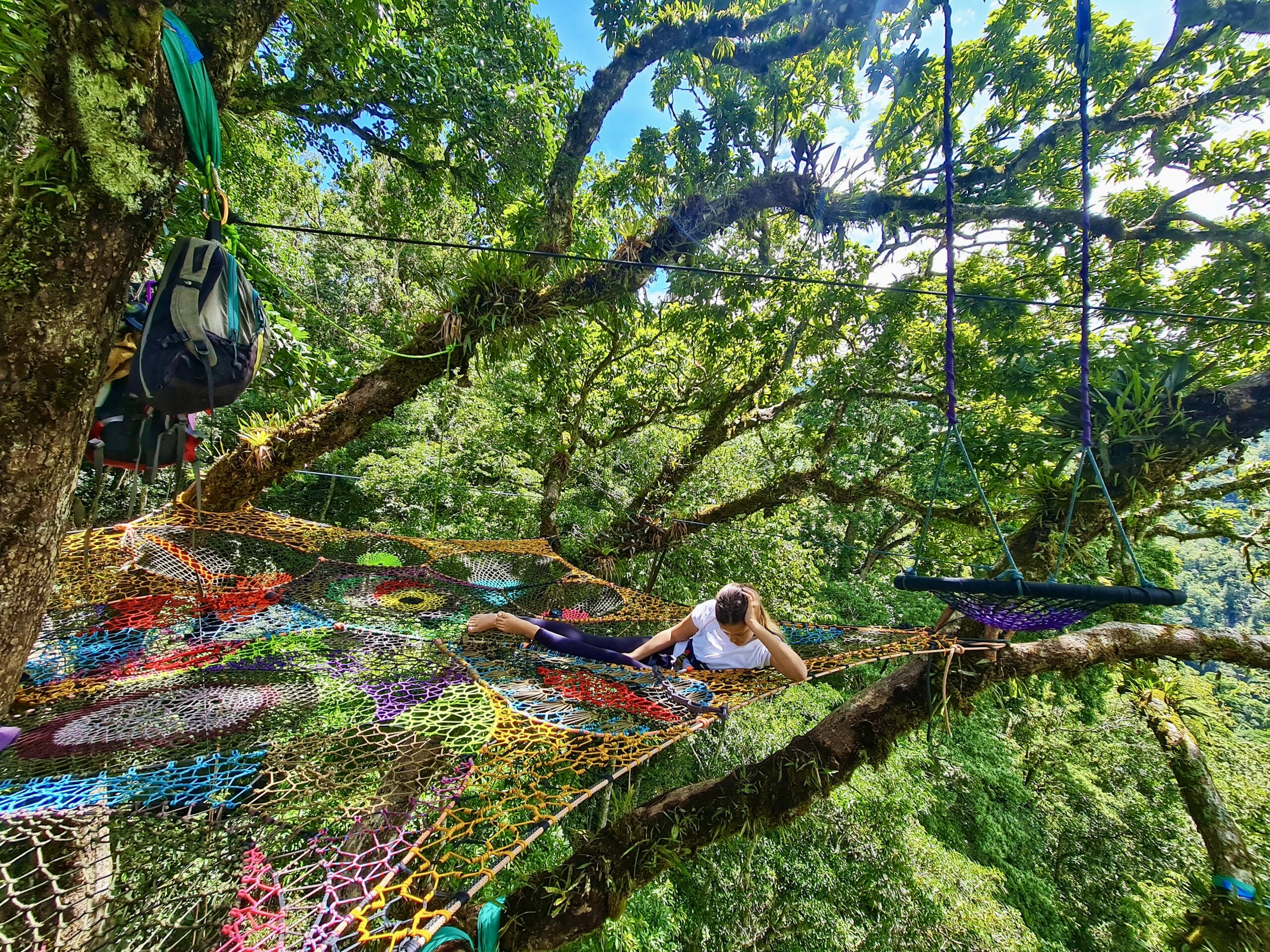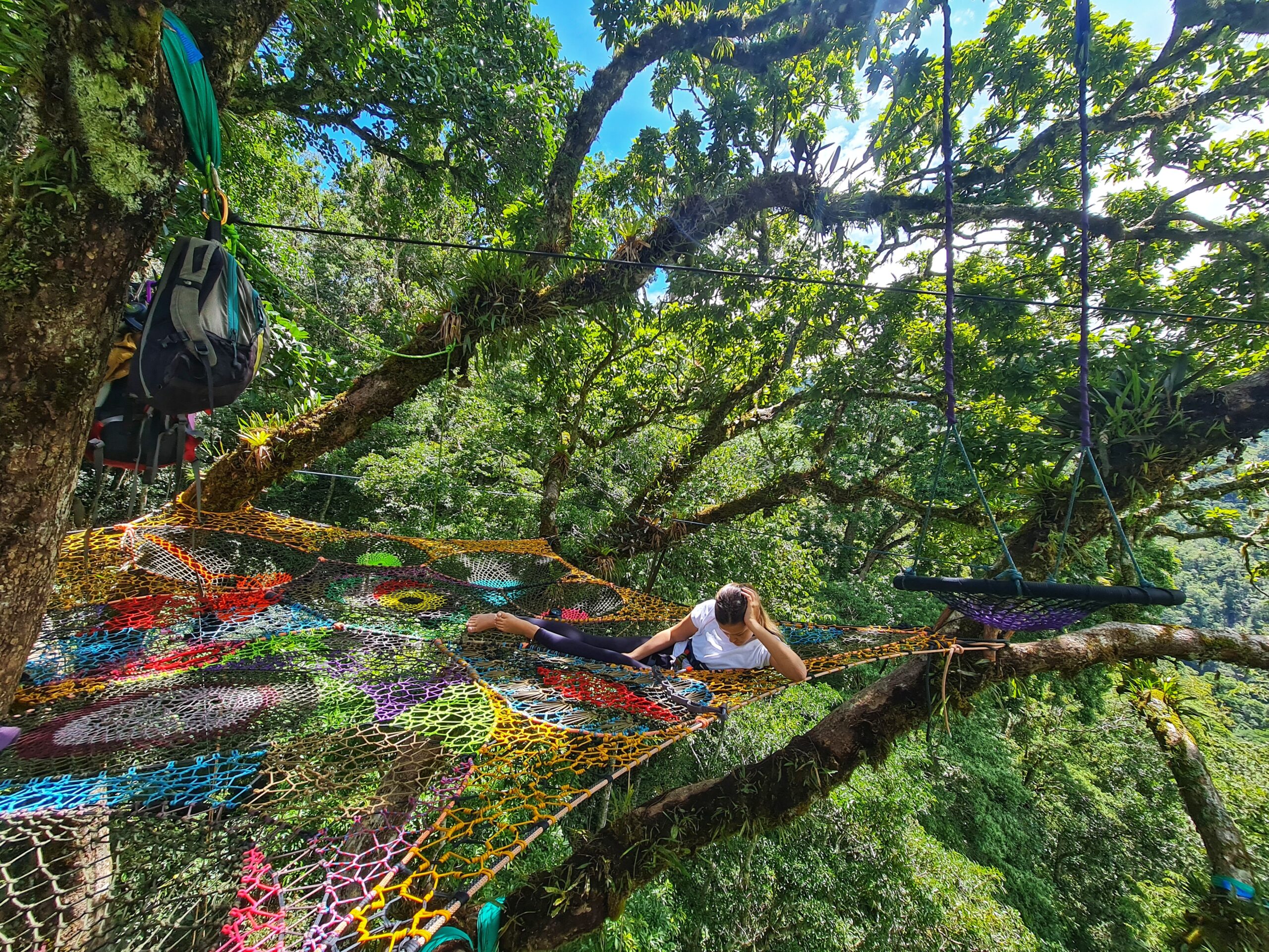 The first high-rise project in Costa Rica, where our director Fer built a beautiful adventure park with a zipline, two treeNets between 90 and 140 feet high in a century-old oak tree, a woven ladder to connect them, views of the Pacific Ocean, the Savegre river and a uniquely designed void jump for the extreme ones who dare. A place full of magic, mysticism and colors.